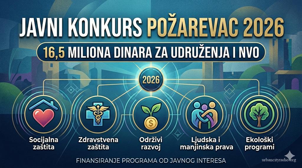 Gradsko veće Grada Požarevca raspisalo je javni konkurs za finansiranje i sufinansiranje programa i projekata udruženja građana i nevladinih organizacija od javnog interesa za 2026. godinu. Za ove namene iz budžeta grada opredeljeno je ukupno 16,5 miliona dinara.