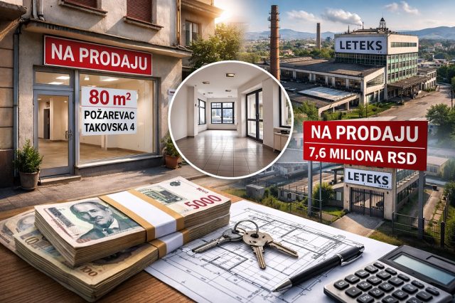 Pored leskovačkog kompleksa, posebno se prodaje i poslovni prostor u Požarevcu. Reč je o lokalu površine 80,85 kvadrata u Takovskoj ulici, smeštenom u prizemlju porodične stambene zgrade i evidentiranom kao vanknjižni objekat. Početna cena za ovu imovinsku celinu iznosi nešto više od 7,5 miliona dinara.