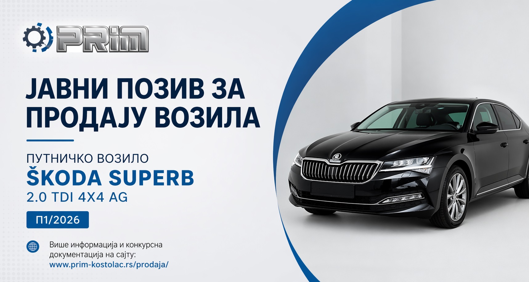 „Понуда у поступку продаје основног средства – Путничко возило П1/2026 – НЕ ОТВАРАТИ“